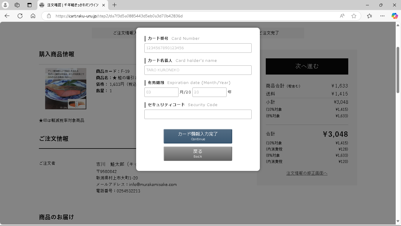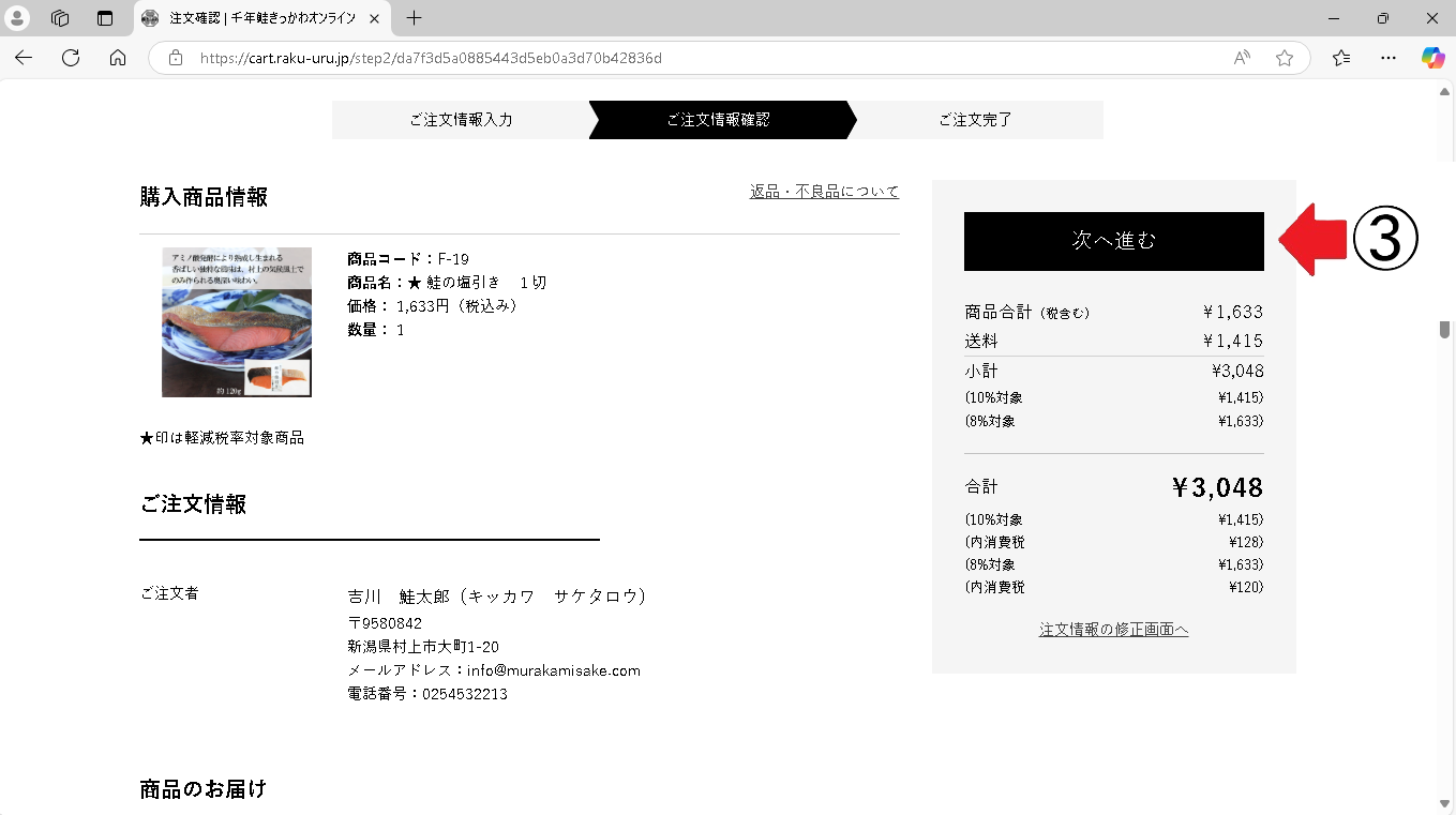 クレジットカードでお支払いの場合 販売価格 0円(税込み) 会員価格 (税込み) 通常価格 (税込み) 在庫 商品コード JANコード 数量 - + ただいまご注文いただけません。 カテゴリー 【 必読 】ご注文の前にお読み下さい CATEGORYカテゴリー 【 必読 】ご注文の前にお読み下さい お歳暮ピックアップ(11-12月DM) 塩引き鮭 A期間(11月中にお届け) 塩引き鮭 B期間(12月1日から10日お届け) 塩引き鮭 C期間(12月11日から20日お届け) 塩引き鮭 D期間(12月21日から31日お届け) 各種ギフトセット ~3000円 3000円~ 5000円~ 10000円~ 化粧箱・手提げ袋 ギフト包装 手提げ袋 鮭の塩引き 鮭の酒びたし 鮭の生ハム 作りたて 鮭の焼漬 はらこ(いくら) 手づくり麹 あまざけ ご飯にあわせて お酒にあわせて 鮭の飯寿司 洋風鮭料理(マダム キッカワ)